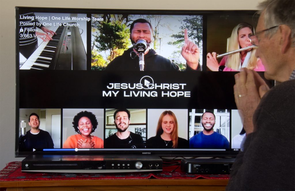 It is then that I use my imagination as I think God intended us to use it. I believe He has given it to us to picture the invisible. Now, as we pray in our weekly times of ‘corporate’ worship and intercession, I picture all those on Zoom, Facebook and YouTube joining with the angels in heaven — all of us before the throne of grace in praise and intercession. I have often pictured angels joining in with our prayers, so it is not a big step to picture our church members participating with them.